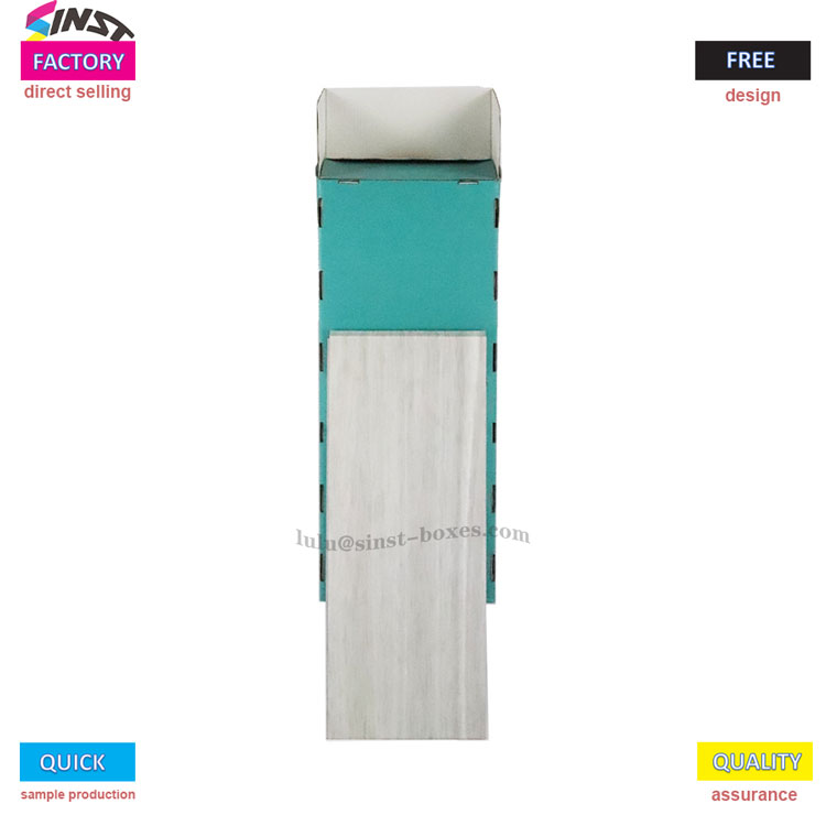 Ця гофрована стійка для канцелярських товарів в основному використовується для демонстрації різноманітних канцелярських товарів. Загальний корпус має прямокутну форму і виготовлений зі світлого дерева або білого матеріалу з імітацією деревини, який виглядає освіжаючим і текстурованим. Спереду спеціально розроблені три відкриті відділення зеленого або синьо-зеленого кольорів, які ідеально підходять для сортування та зберігання канцтоварів. Будь то книги, різноманітні зошити чи різні стилі ручок, усі вони можуть бути надійно розміщені всередині. Крім того, ця стійка має трапецієподібну структуру, що злегка нахилена вперед, що полегшує доступ до неї та розміщення предметів без особливих зусиль.