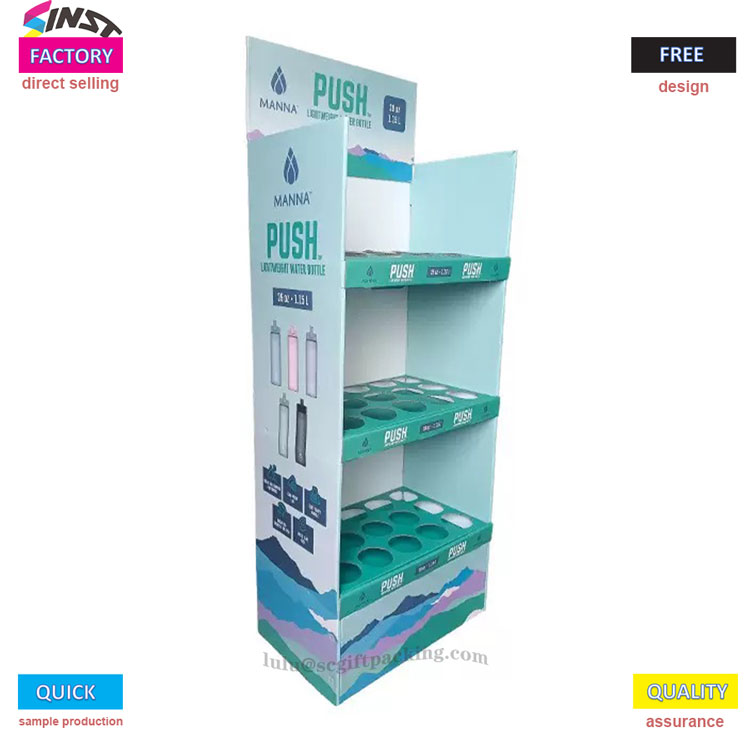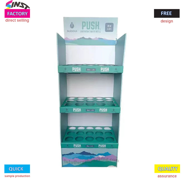 Наша картонна коробка на підлозі підлоги для пляшки з водою Supermarke - це індивідуальне рішення, розроблене спеціально для термінального відображення продуктів з пляшками з водою, таких як підставки для дисплеїв мінеральної води, стенди на дисплеї для спортивних напоїв, стенди дисплея з вітамінним напоєм, підставки для дисплея з фруктами та чайні стенди; Обробка поверхневої стійки глянсовим клеєм, матовим клеєм, УФ , множинні варіанти процесу, такі як випивання; Він має дизайн "шару за шаром", займає менше місця і може акуратно організувати багато пляшок з водою. Клієнти можуть бачити всі стилі з першого погляду, що робить продажі більш зручними.