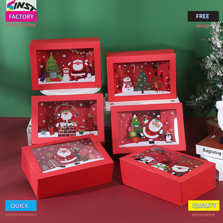 Ця різдвяна коробка для цукерок має теплий червоний фон, прямокутний корпус коробки та прозоре віконце, наче віконце, куди можна поглянути в зимову казку. Ця різдвяна коробка для цукерок виготовлена з твердого паперового матеріалу, який може виставляти цукерки всередині та має певний ступінь стабільності. Його можна адаптувати до таких повсякденних продуктів, як шоколад, десерти, печиво, цукерки тощо; Це не тільки мила ємність для цукерок, а й настільна новорічна прикраса. Даруючи його людям для особистого користування, можна підняти святковий настрій, роблячи кожну солодкість оповитою відчуттям церемонії.
